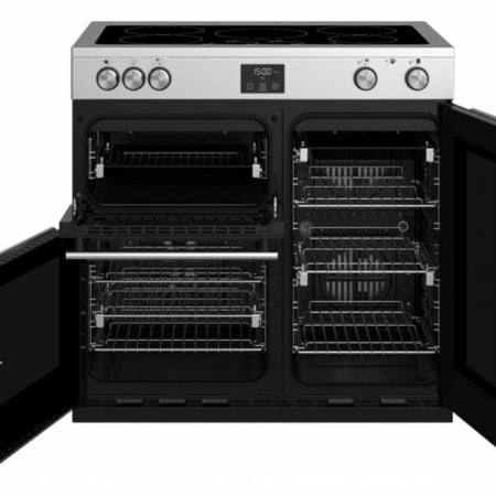De Stoves Precision DX S900Ei SS rvs is een 90 cm. breed design fornuis waarvan het bedieningspaneel is uitgevoerd in de kleur rvs. Het fornuis heeft een zeer strakke uitstraling en kan zodoende perfect geplaatst worden in een moderne keuken. De ovendeuren zijn zwart.