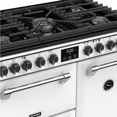 De Stoves Richmond S900 DF Deluxe Icy White is een 90 cm. breed design fornuis uitgevoerd in de kleur ijs wit. Het fornuis heeft een landelijke uitstraling en kan zodoende perfect geplaatst worden in de klassieke keuken.