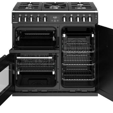 Indien de Stoves Richmond S900 DF Deluxe zwart op de juiste elektrische voorziening is aangesloten, is het mogelijk om bijvoorbeeld twee ovens tegelijkertijd te gebruiken.