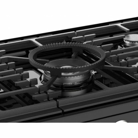 Kookgedeelte Bovenop zit een gaskookplaat met gietijzeren pandragers een wokbrander van 4,0 kW in het midden voor een groot vermogen tijdens het koken. De kookplaat is voorzien van branders met automatische vonkontsteking in de knoppen en thermokoppel: geen vlam = geen gas.